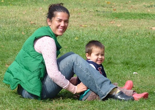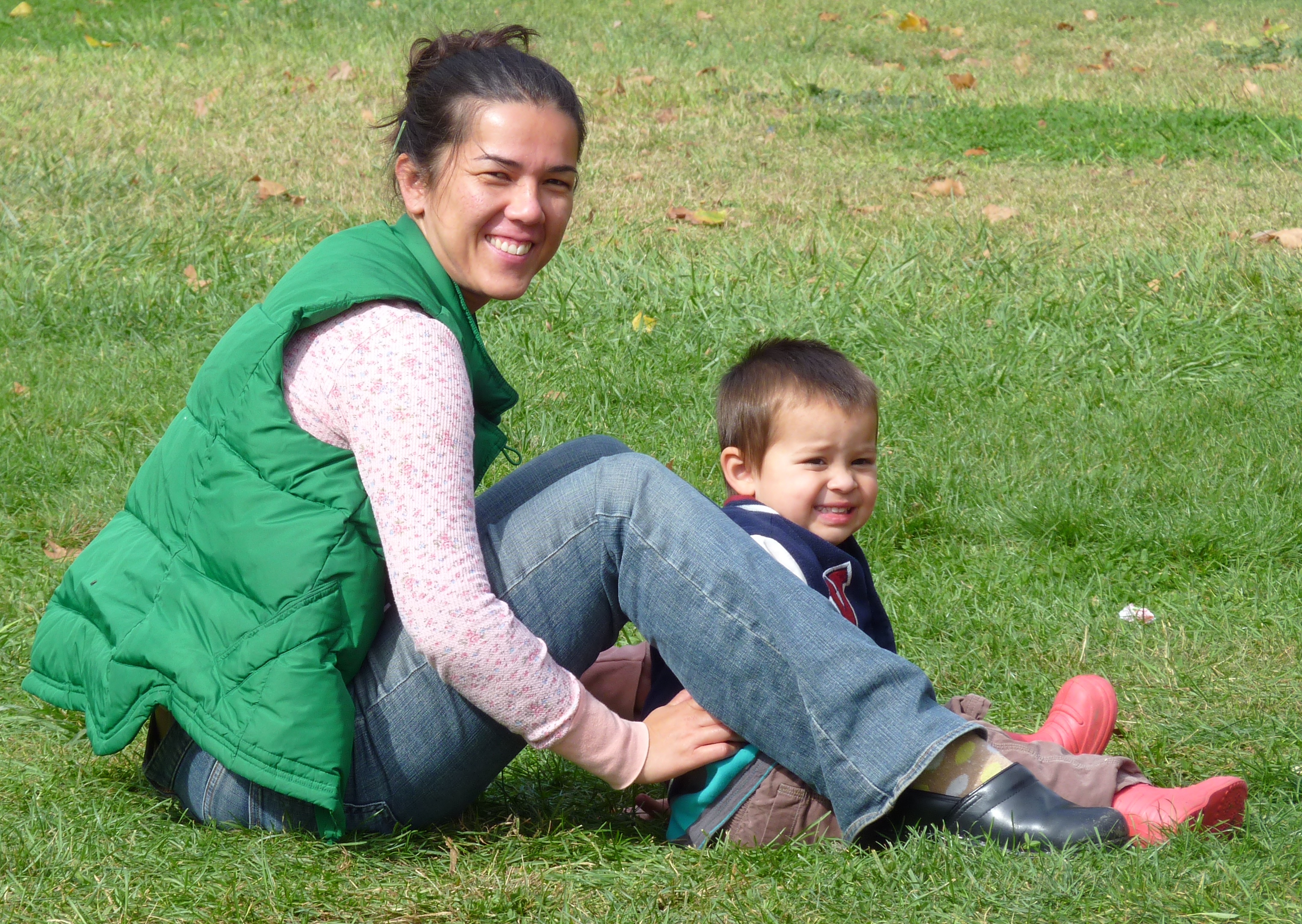 Auntie Vig shows Zy fun stuff at Picnic Day