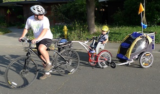 Omen narrowly missed sharing his birthday when Alinia gave birth to the newest family member in late May, Zhayne Lane Jo Asmundson-Wild. Zypher has taken everything in stride as a new big brother and graciously gave up his bike trailer seat to Zhayne — he now views the world from atop a Trail-a-bike child seat. Alinia took the summer off again and this time around the family managed to do a little traveling with the newborn — weekend trips to a wine country wedding and Labor Day in Eureka. She returned to Intel in September working on a new project building the infrastructure for a tools web-store. Omen is still enjoying his short commute to the campus Data Center (especially since Lola takes the two children to daycare), even though the job means working the day after Christmas when most folks do not need their email. And although Omen's grandmother Natalie's health has been declining precipitously, the mixed blessing is that Zypher and Zhayne have been spending a lot of time with their Nana, Omen's mother Mary Jo.